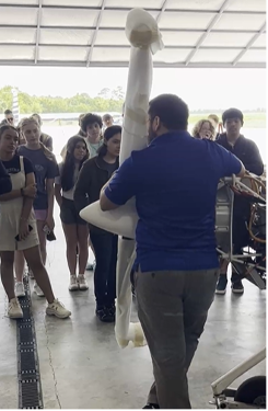 After meeting up with the group in Daytona, Florida, the trip officially kicked off at Daytona International Speedway to participate in a behind-the-scenes tour of the stadium. Students learned how mechanical and design engineering helped to build the world’s fastest racecars and a track that kept them on course. After, students headed to Embry-Riddle Aeronautical University to speak with deans and professors from both the ERAU College of Business and the College of Aviation about how the university prepares students for careers working in the aerospace, aviation, and space industries. They also visited with engineers in the ERAU Eagle Flight Research Center to hear about their current projects, including experimental flight testing and drone technology.